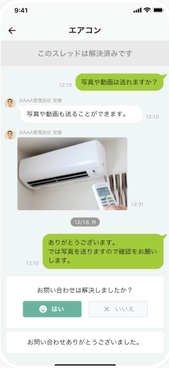 チャット機能で管理会社へいつでもお問い合わせ頂けます。