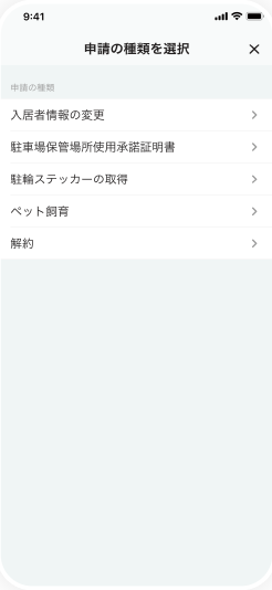 ご退去の際やその他の申請をアプリから申請することが可能です。